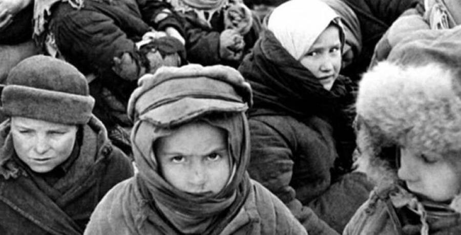 Спасенные дети и работницы детдома