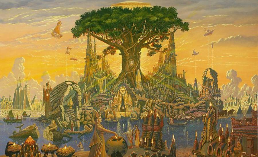 На Буяне, по преданиям, хранится чудесная сила, которая помогает былинным героям бороться со злом. На острове растет дуб, в ветвях которого прячется смерть Кащея, а также на Буяне спрятан священный камень Алатырь, олицетворяющий собой центр мира: найдешь его – и все твои желания исполнятся.