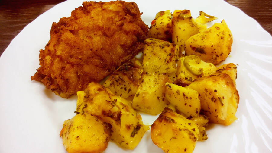Обложка: Пожарская котлета и картофель с маслинами в новосибирском кафе «Оливка». Фото: К.Артём.1 CC BY-SA 4.0