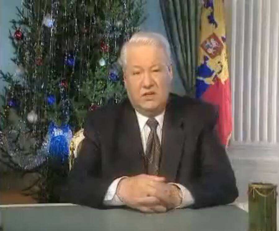 Обложка: фрагмент видео Отставка Б.Н. Ельцина. Новогоднее обращение (1999).