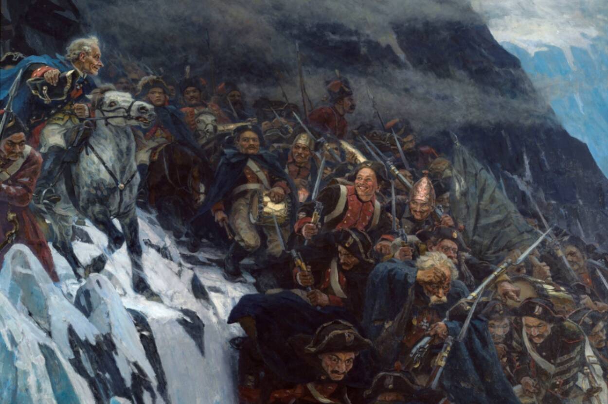 Обложка: В.И. Суриков «Переход Суворова через Альпы в 1799 году» (фрагмент), 1899 год. © Государственный Русский музей