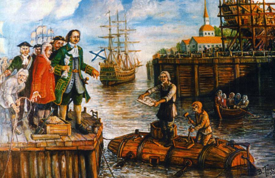 А начиналось все это почти 300 лет назад. Именно тогда, в 1718 году, неграмотный плотник из подмосковного села Покровское Ефим Прокопьевич Никонов подал на имя царя челобитную на постройку «потаённого судна». Очень важно, что этот документ сохранился в архивах, а предложение плотника не оставило равнодушным царя. Петр I вызвал мастера в Санкт-Петербург, лично с ним встретился и распорядился, «таясь от чужого глаза», построить сначала модель судна, а уж потом…