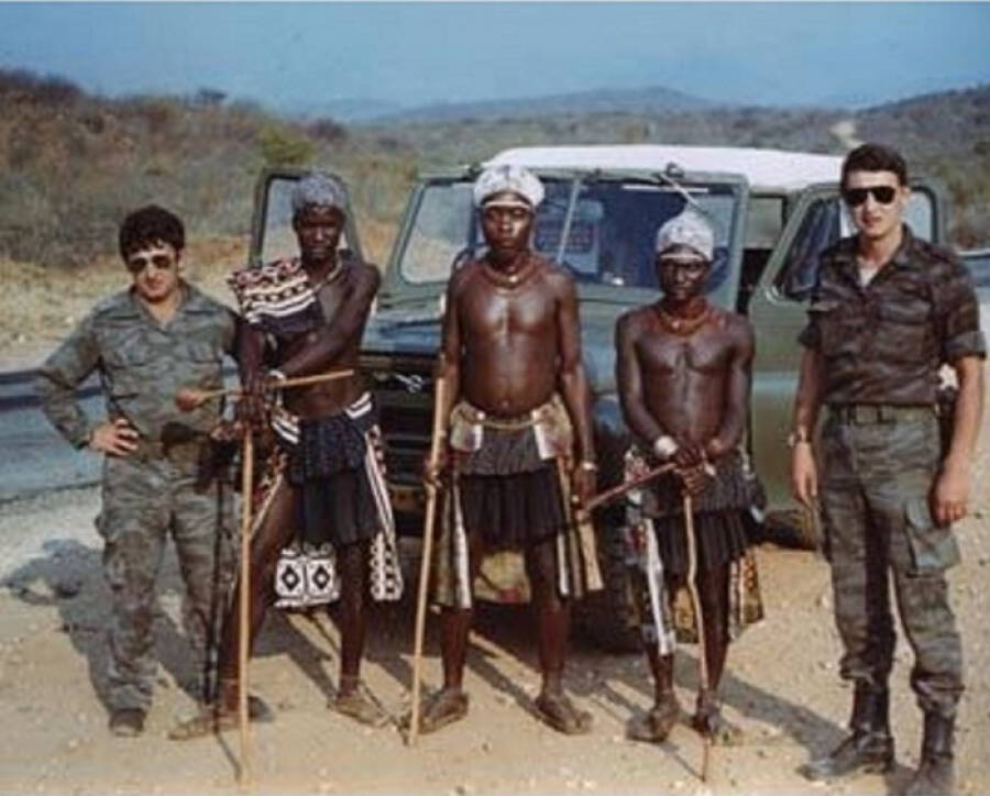 Советские военные специалисты в сопровождении бойцов армии Мозамбика
