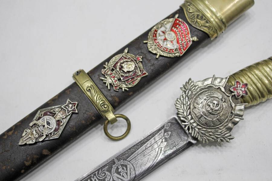 Очень любопытно, что декрет от 8 апреля 1920 года не ввел, а фактически закрепил практику награждения оружием наиболее выдающихся советских военачальников, которая сложилась к тому времени. Первыми обладателями шашек с золотыми эфесами и накладным изображением ордена Боевого Красного Знамени на оголовье ножен стали Сергей Каменев и Василий Шорин. И произошло награждение еще 8 августа 1919 года!