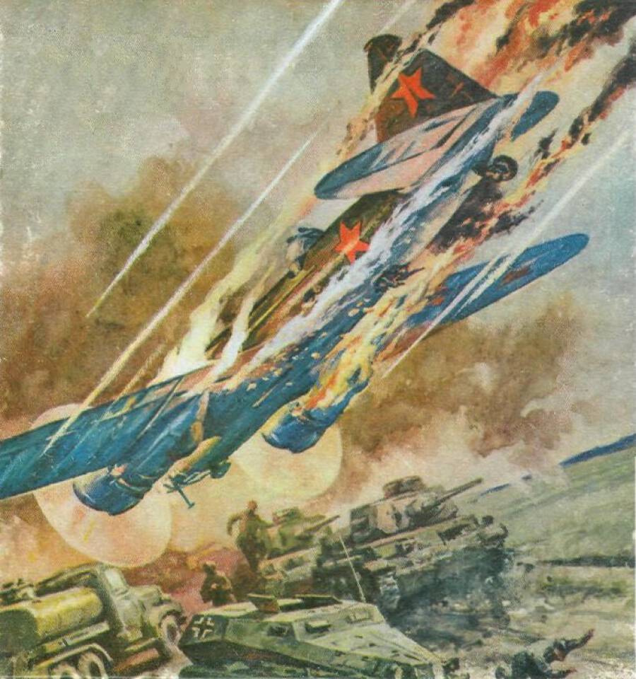 26 июня 1941 г. в 4 утра эскадрилья 207-го дальнебомбардировочного авиаполка под командованием капитана Н.Ф. Гастелло наносила бомбовые удары по механизированной колонне врага на дороге Молодечно – Родошковичи. Сбросив груз, экипаж Гастелло возвращался обратно. В пути его самолет был подбит снарядом зенитки. Загорелся бензобак. Объятая пламенем машина не смогла бы дотянуть до своей базы. И капитан Гастелло направил горящий самолет в скопление бензоцистерн и автомашин противника. Так был совершен подвиг – наземный таран немецко-фашисткой техники. Экипаж, в который входили лейтенант Григорий Николаевич Скоробогатый, лейтенант Анатолий Акимович Бурденок, младший сержант Алексей Александрович Калинин геройски погибли. Они не захотели покинуть самолет на парашютах и пошли на смерть вместе со своим командиром.