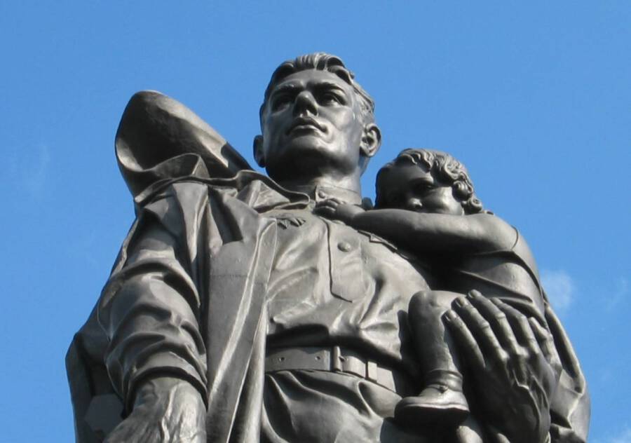 В 1946 году у маршала К.Е. Ворошилова возникла идея об установке в Берлине такого монумента. Он обсудил свою задумку со своим другом – скульптором Евгением Вучетичем. А позже историю этого подвига им рассказал очевидец события – маршал Чуйков. Верховный главнокомандующий Иосиф Сталин одобрил идею, только попросил заменить автомат в руках бойца на меч, рассекающий ненавистную свастику. Так, 8 мая 1949 года в Берлинском Трептов-парке, на месте захоронения нескольких тысяч советских солдат, был открыт известный каждому нашему соотечественнику монумент. В неизменной гимнастерке и плащ-палатке советский солдат бережно прижимает к груди немецкую девочку. 12-метровый монумент получил название «Воин-освободитель» и установлен как символ окончания войны, символ добра и освободительной миссии Красной Армии.