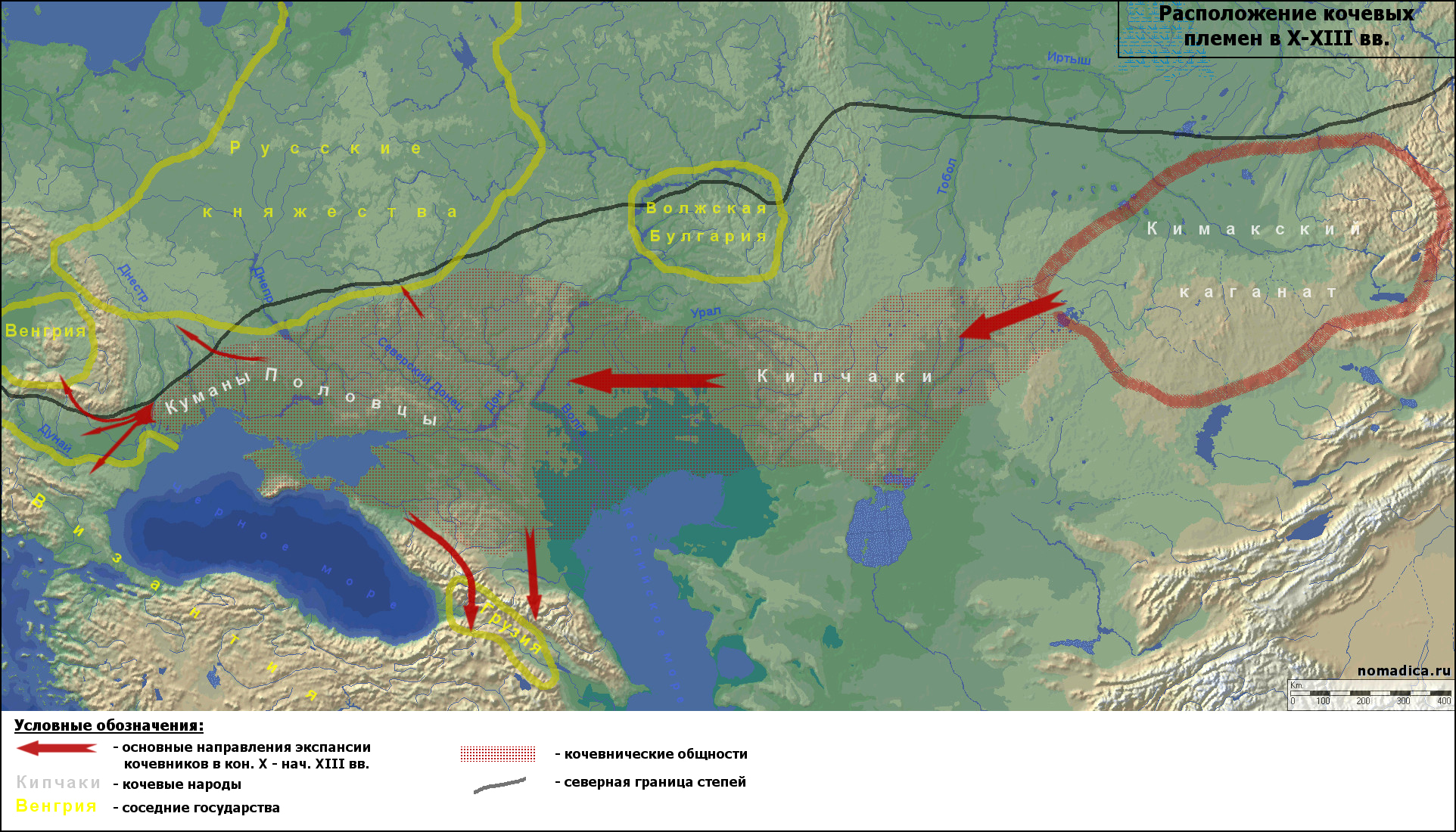 В середине XI в. ареал кочевания кипчаков (кимаков) простирался от Иртыша на востоке до Волги на западе. Современники назвали эту огромную территорию Дешт-и-Кипчак (Половецкая степь).
