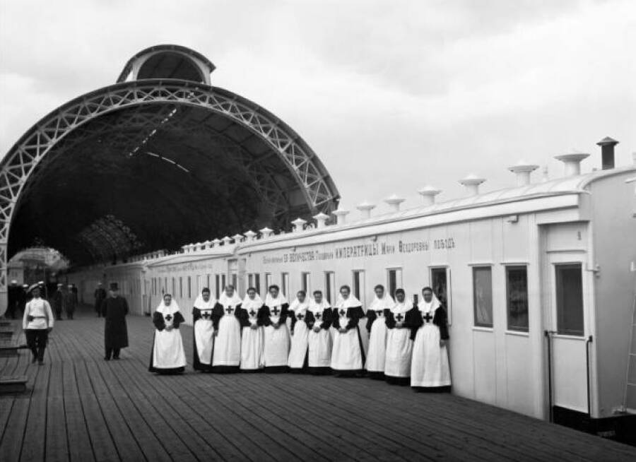 Это был последний год, когда общество пользовалось своим первоначальным названием. В 1879 году оно было переименовано в Российское общество Красного Креста, а его почетными членами стали и сам император, и все великие князья, княгини. С этого времени практически ни один серьезный вооруженный конфликт с участием российской армии или без него, вблизи от границ России или вдали от них не обходился без участия русских сестер и братьев милосердия. Они побывали на сербско-болгарской войне и на англо-бурской, оказывали помощь пострадавшим от наводнения в Санкт-Петербурге и во время боксерского восстания в Китае, помогали жертвам балканских войн и оставшимся без крова во время землетрясения в Италии… А самую большую помощь дореволюционный российский Красный Крест оказал, конечно, во время Первой мировой войны: в ходе нее на службе в обществе состояли 2500 врачей, 20 000 сестер милосердия и 50 000 санитаров, многие из которых служили на так называемых санитарных поездах Красного Креста и в полевых лазаретах непосредственно в местах боевых действий.