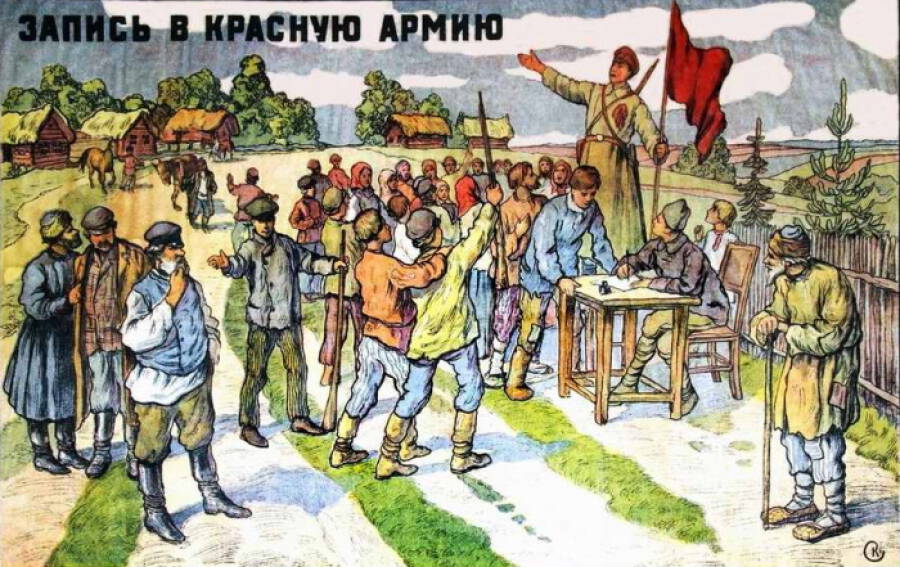 Обложка: «Запись в Красную Армию». Агитационный плакат 1918 года. Источник: oppps.ru