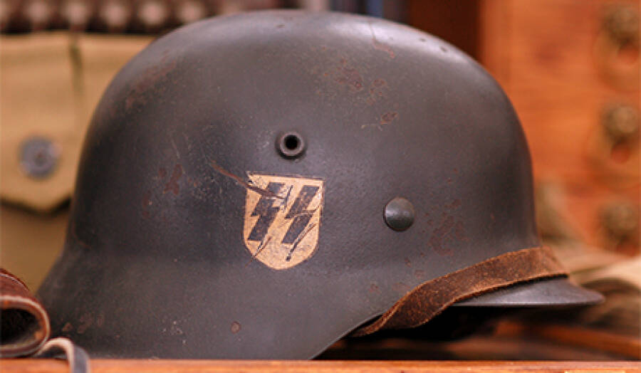 Обложка: Немецкий стальной шлем модели М35 с эмблемой Ваффен СС (SS = Sturmstaffel), воинской части Национал-социалистической немецкой рабочей партии.