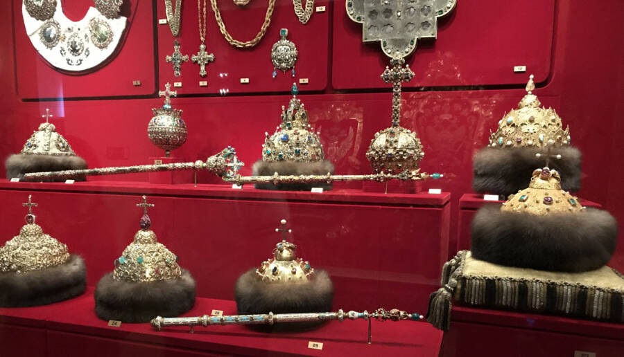 Описание: Наверное, наиболее известное собрание сокровищ и предметов роскоши находится в здании Оружейной палаты московского Кремля. В отличие от других коллекций драгоценностей, до XX века по большей части закрытых от простых посетителей, эта стала доступной для просмотра уже в 1813 году, однако только для дворян и купцов. После революции Оружейная палата стала общественным музеем, которым остаётся и поныне.