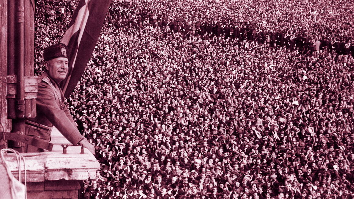 Через три года Муссолини стал диктатором, именовавшимся не иначе как дуче (итал. duce и лат. dux – «вождь»). Он сконцентрировал в своих руках ключевые посты, его партия контролировала парламент. Оппоненты были запуганы, непримиримые – например, депутат от социалистов Джакомо Матеотти – убиты. До 1930 года популярность Муссолини в народе гарантировал стабильный экономический рост, а после в состоянии единства общество поддерживала милитаристская риторика, а также серия войн – в Абиссинии, Испании и Албании. Слабость итальянской армии, проявившаяся с началом Второй мировой войны, обернулась провалами 1940–1942 гг. в Греции, Северной Африке и Советском Союзе, и резко подорвала доверие к дуче. После вторжения союзников на Сицилию 26 июля 1943 года Муссолини сместили со всех постов и арестовали.