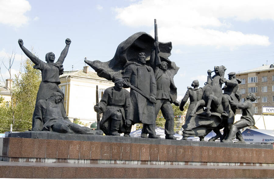 Обложка: Памятник «Революции 1905-1907 годов посвящается» (Москва, пл. Краснопресненской заставы, метро «Улица 1905 г».) Скульпторы О.А. Иконникова и В.А. Федорова, архитекторы М.Е. Константинова, А.М. Половникова и В.М. Фурсова. Был открыт 17 февраля 1981 года в честь 75-летия Декабрьского восстания 1905 года.