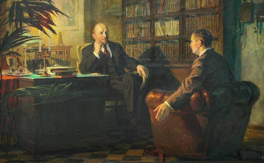 Ленин сидел за письменным столом, заваленным книгами и бумагами. Уэллс сел справа от стола, и началась, по его выражению, интересная беседа.