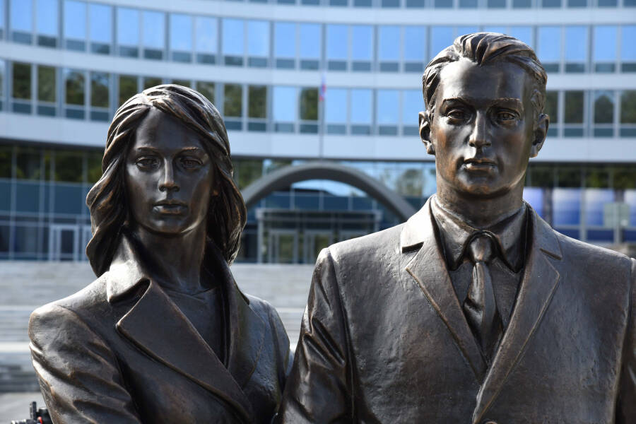 К столетию Службы внешней разведки было принято решение установить памятник в честь отечественных сотрудников-нелегалов всех времен. Предложений и проектов было множество. Но победил именно тот, где молодая семейная пара, прошедшая сложную подготовку, отправляется в трудный путь, чтобы там, вдали от Родины, выполнить важное задание по защите безопасности страны.