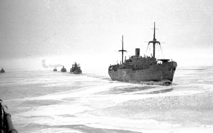 Всего арктическими водами в Советский Союз прошло 40 конвоев, а в обратном направлении – 35 конвоев. Всего за годы Великой Отечественной войны северным маршрутом доставлено 36% всех военных грузов.