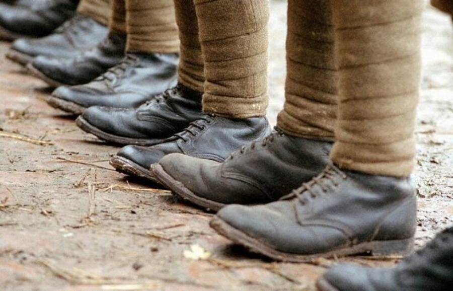 Обувь пытались купить по всему миру, но основные заказы были размещены в Англии и США. Сказать, что с обувью были проблемы только у России, не совсем верно. Обуви не хватало всем. Вот и пришлось большинству солдат воюющих держав к 1916 году перейти на оптимальную для тех условий военную обувь – кожаные ботинки с матерчатыми обмотками.