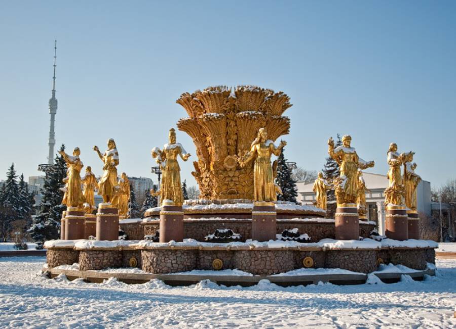 Обложка: Фонтан «Дружба народов», ВДНХ, Москва. Один из главных символов ВДНХ украшен золотыми статуями, символизирующими 16 союзных республик. Создан в 1954 году. Архитектор — К.Т. Топуридзе, инженер — В.И. Клявина, скульпторы — З.В. Баженова, А.И. Тенета, И.М. Чайков, З.В. Рылеева, В.П. Гаврилов.