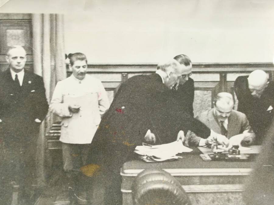 23 августа 1939 г. в Москву прибыл И. Риббентроп. В ночь на 24 августа был подписан, а на следующий день опубликован советско-германский Договор о ненападении сроком на 10 лет. Обе договаривающиеся стороны брали на себя обязательства воздерживаться от любого насилия и агрессивных действий в отношении друг друга. В случае возникновения споров или конфликтов между СССР и Германией, обе державы должны были разрешать их "исключительно мирным путем в порядке дружественного обмена мнениями". При окончательном редактировании советского проекта договора Сталин отклонил формулировку Риббентропа о "германо-советской дружбе". Особенностью подписанного договора было то, что он вступал в силу немедленно, а не после его ратификации.