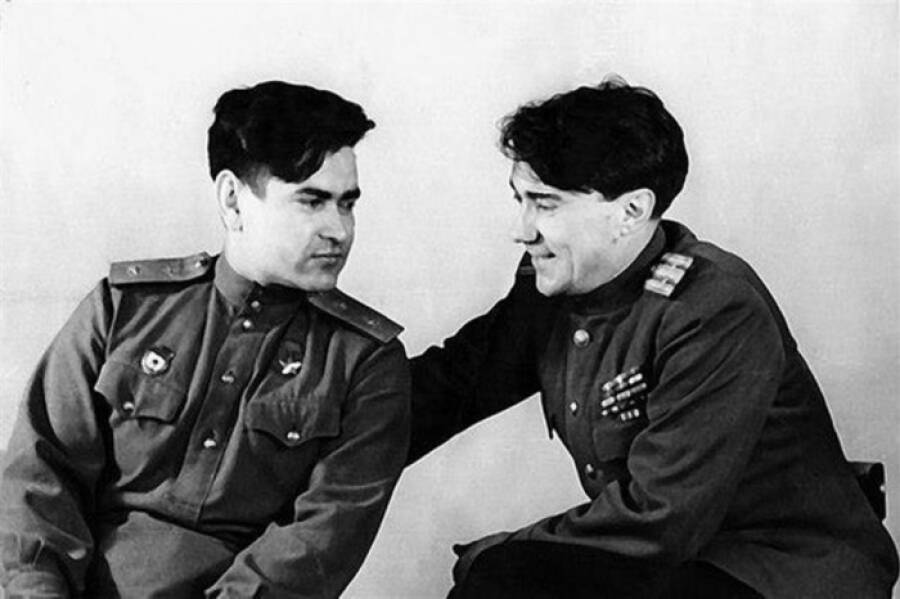 Обложка: Герой Советского Союза майор Алексей Маресьев (слева) и писатель, автор книги «Повесть о настоящем человеке» подполковник Борис Полевой, 1946 год. Источник: cbs-irkutsk.ru