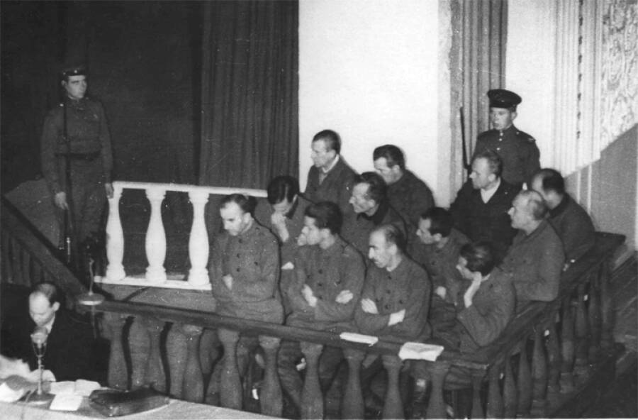 На суде выступали многочисленные свидетели: медицинский эксперт, священник, очевидцы расстрелов. Защищали обвиняемых три адвоката.