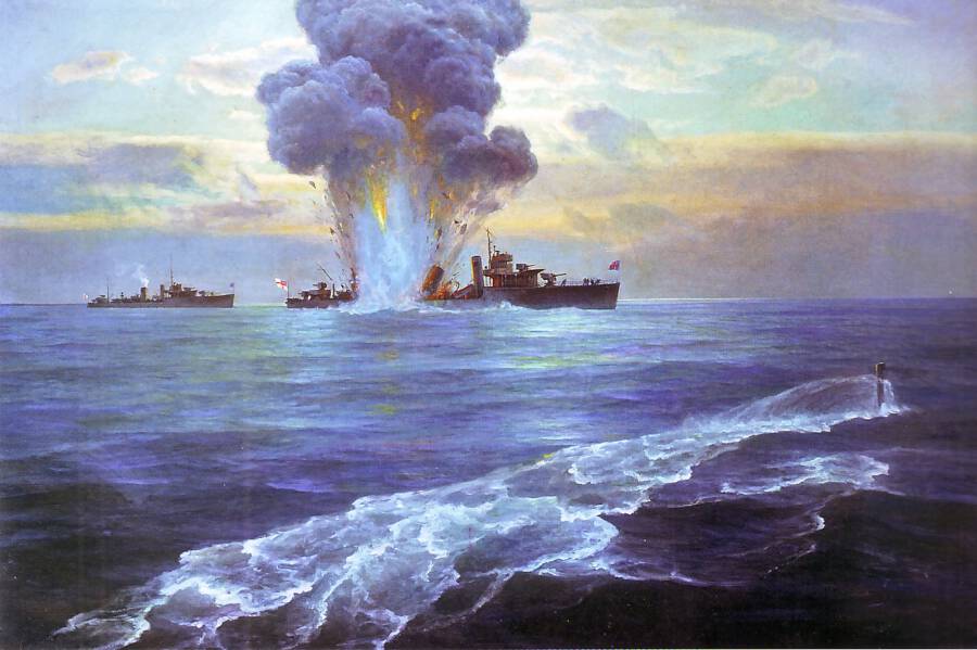 Обложка: «Потопление подводной лодкой Балтийского флота «Пантера» английского эскадренного миноносца «Витториа» у острова Сескар. 31 августа 1919 г.». Картина художников-маринистов Н. Бубликова и Г. Горшкова, 1949 год, из фондов Центрального военно-морского музея. Источник: ru.wikipedia.org