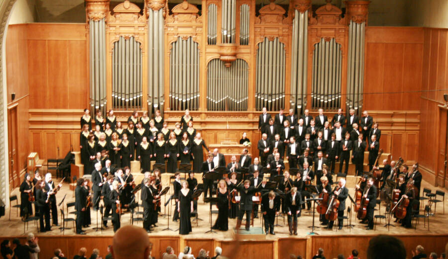 Обложка: Московский симфонический оркестр и Государственная академическая хоровая капелла России имени А.А. Юрлова на сцене Большого зала Московской консерватории. 12 декабря 2007 года. Автор Macs24.