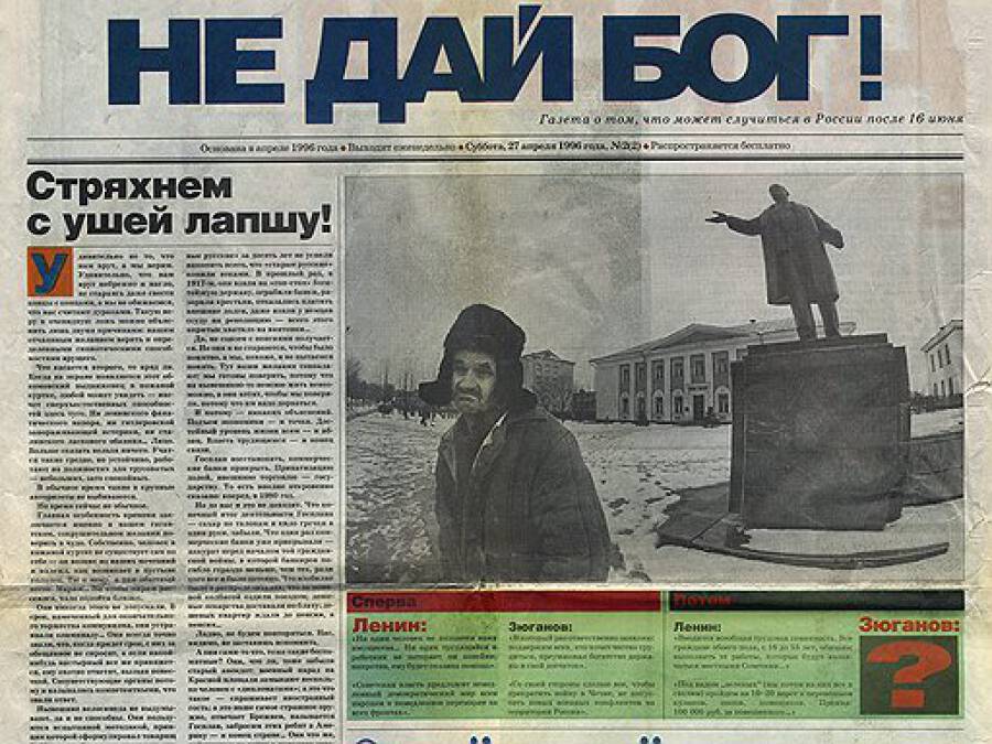 Обложка: обложка газеты «Не дай Бог!» о том, что может случиться в России после 16 июня 1996 года