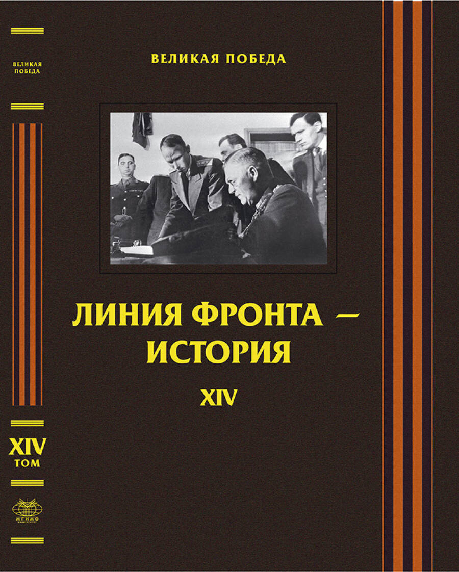 Обложка: обложка четырнадцатого тома Пятнадцатитомного издания «Великая Победа», посвященного политическим, военным и дипломатическим столкновениям самой масштабной войны, затронувшей судьбы всего мира.