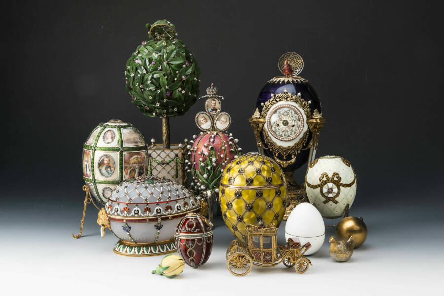 Точно неизвестно, сколько яиц было изготовлено ювелирным домом Фаберже. Принято считать, что 71 (императорских - 54). Но до наших дней дошло 65 (императорских - 48). Сейчас они хранятся в государственных музеях и частных коллекциях. Причём не только в России, но и в США, Великобритании, Швейцарии, Монако.