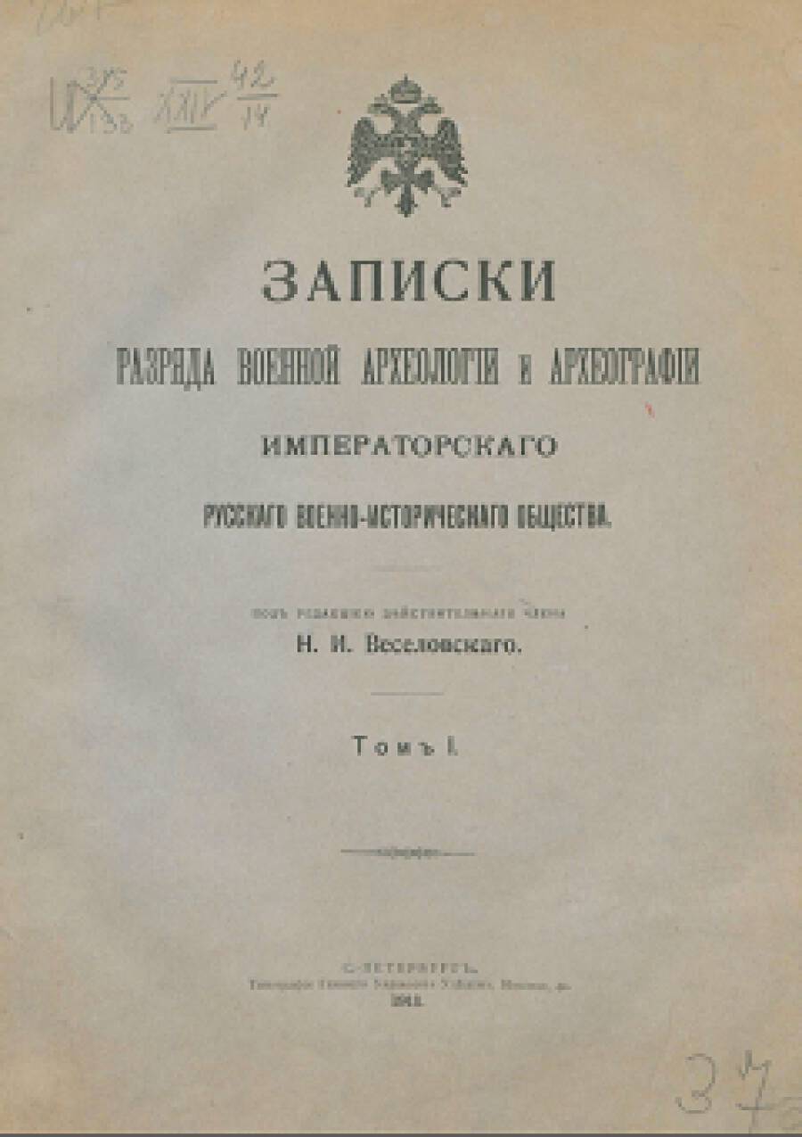 Записки разряда военной археологии и археографии Императорского Русского военно-исторического общества. Под ред. Н.И. Веселовского. Том I. СПб., 1911