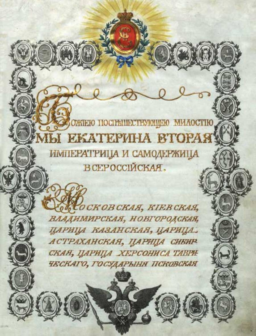 «ГРАМОТА НА ПРАВА, ВОЛЬНОСТИ И ПРЕИМУЩЕСТВА БЛАГОРОДНОГО РОССИЙСКОГО ДВОРЯНСТВА»