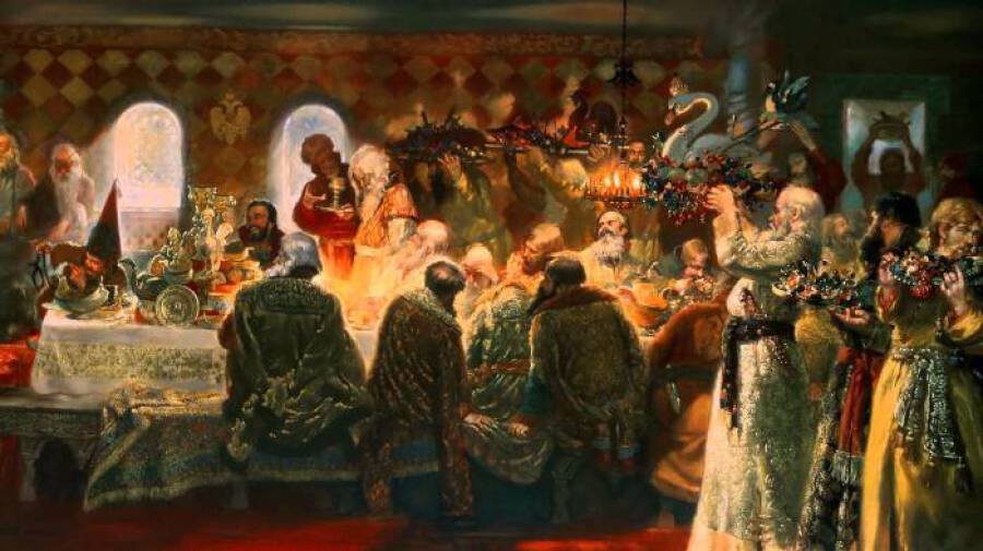 Однако не всё было так плохо. Чаще царский пир был действительно радостным событием. Пышной трапезой отмечали победы или важные межгосударственные соглашения, или праздники. Возможно, из-за стремления копировать царский пир бояре, дворяне и простой русский люд так полюбили устраивать застолья. А ведь мы знаем, что традиция хорошего, веселого и сытного застолья до сих пор сохранилась в нашей культуре. Не зря после отличного застолья мы и сейчас говорим: «Пообедали по-царски»!Обложка: kulturologia.ru