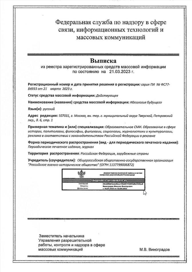 Первый выпуск журнала вышел в электронном виде в 2021 г. – /magazine/release/ideologiya-budushchego-obshchestvenno-politicheskiy-nauchno-teoreticheskiy-ekspertno-analiticheskiy-zhurnal-2021-1.