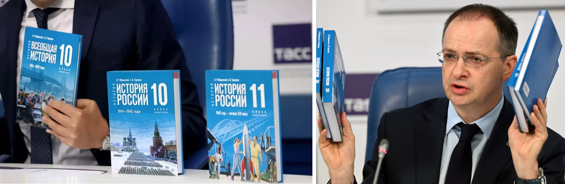 7 августа 2023 года на конференции ТАСС Мединским был представлен новый единый государственный учебник по всемирной истории и истории России для 10—11 классов. Владимир Мединский отметил, что проект учебника ставил перед собой задачу пересмотра структуры и содержания всемирной истории и истории России. Министр просвещения РФ Сергей Кравцов подчеркнул, что в линейке будет отражено влияние России на глобальную историю. В учебник по истории России впервые были включены современные инструменты подачи информации, такие как QR-коды, которые позволят получать доступ к архивам, библиотекам и фильмам на государственных порталах, а также на российской видеохостинговой платформе.