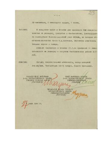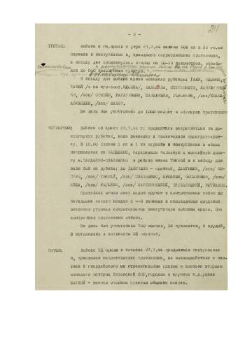 Боевое донесение командующего войсками 1-го Прибалтийского фронта от 27 июля 1944 г. № 209 Верховному Главнокомандующему об овладении областным центром Литовской ССР — г. Шауляй.
