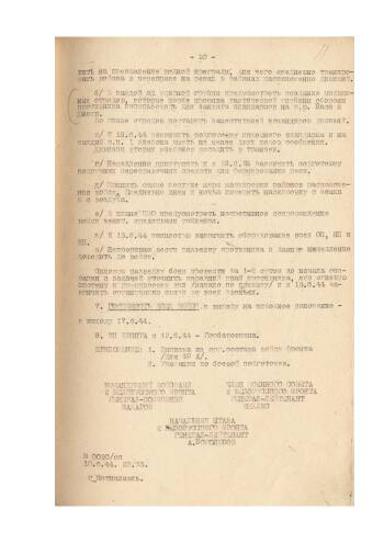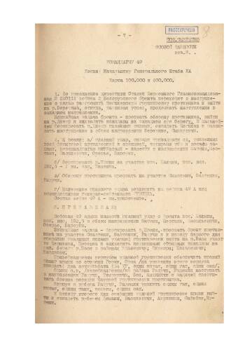 Боевое распоряжение командующего войсками 2-го Белорусского фронта от 10 июня 1944 г. № 0020/оп командующему 49-й армией о начале наступления и нанесении главного удара во исполнение Директивы Ставки Верховного Главнокомандования от 31 мая 1944 г. № 220112