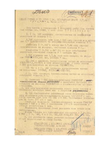 Боевой приказ командующего 1-й Воздушной армией от 3 июля 1944 г. № 10 о готовности к штурму гор. Минск.