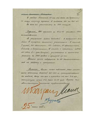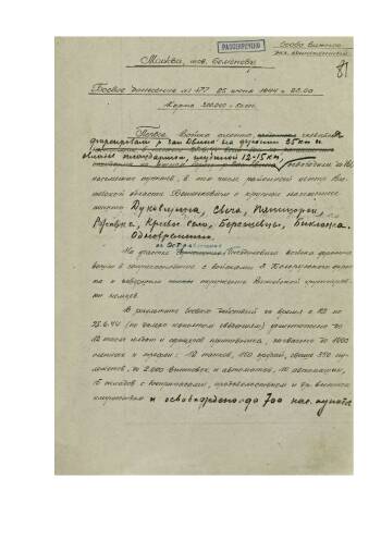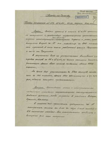 Боевые донесения штаба 1-го Прибалтийского фронта за период с 23 по 28 июня 1944 г. о боевых действиях войск фронта, общей обстановке, действиях противника.