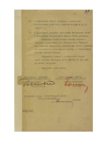 Частная оперативная директива штаба 1-го Белорусского фронта от 12 июня 1944 г. № 00477/оп Командующему Днепровской военной флотилией о поддержании действий войск фронта в направлении на Бобруйск. Машинописный текст. Подлинник.