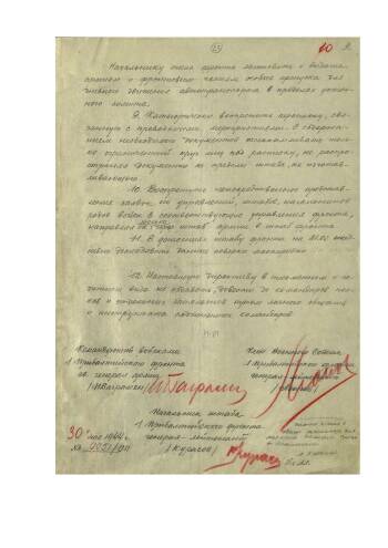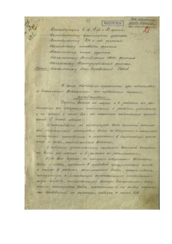 Директива Военного совета 1-го Прибалтийского фронта № 0051/оп от 30.05.44г. о мероприятиях о подготовке к Витебской наступательной операции (маскировка войск)