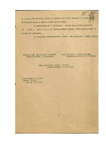 Боевое распоряжение командующего войсками Карельского фронта от 1 августа 1944 г. № 0080/44/оп (на 16.00) командующему войсками 32 армией на овладение флангом противника на Корписельском направлении.