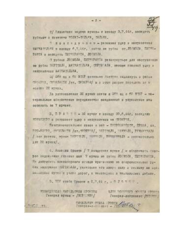 Директива командующего войсками Карельского фронта от 1 июля 1944 г. № 0057/44/оп командующему войсками 7 армией на наступление.