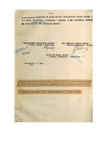 Донесение командующего войсками Карельского фронта от 5 августа 1944 г. № 0092/44/оп Верховному Главнокомандующему об итогах боевых действий с 1 по 10 августа 1944 года