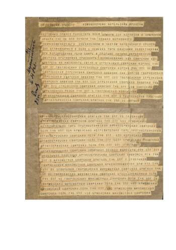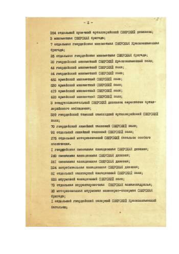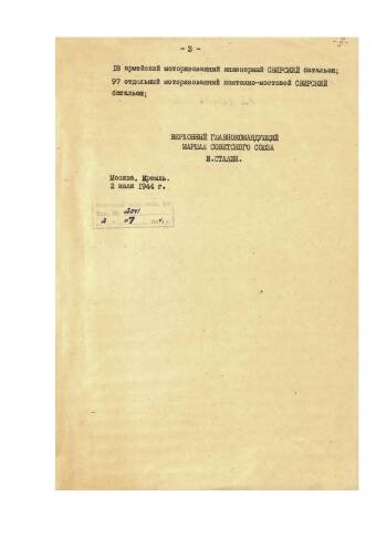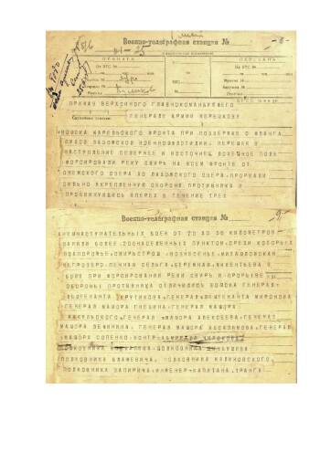 Приказ Верховного Главнокомандующего от 2 июля 1944 г. командующему войсками Карельского фронта о присвоении соединениям и частям фронта, отличившимся в боях с немецко-фашистскими захватчиками при форсировании р. Свирь и прорыве сильно укрепленной обороны противника почетных наименований «СВИРСКИХ» и награждение орденами наиболее отличившихся в бою.