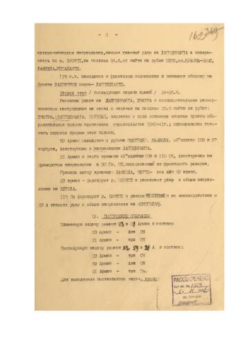 Решение командующего войсками Ленинградского фронта от 21 июня 1944 г. Верховному Главнокомандующему на развитие наступления на Карельском перешейке, во исполнение директивы Ставки от 21 июня 1944 г. № 220119, переданное шифртелеграммой № 8831.