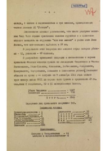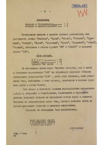 Докладная записка члена Военного Совета 1-го Украинского фронта генерал-лейтенанта Крайнюкова начальнику Главного политического управления КА о ходе ликвидации бандформирований украинских националистов в тылу фронта от 09.1944 г.