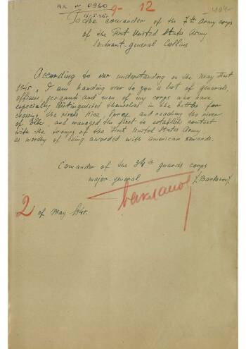 Письмо командира 34-го гвардейского стрелкового корпуса РККА командиру 7-го армейского корпуса американской армии