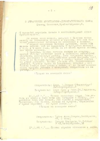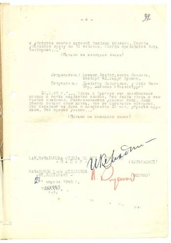 Спецсообщение отдела военной цензуры в Германии члену Военного совета СВАТ Ф.Е.Бокову 23 апреля 1946 г. 1 / 4 Содержание документа Скачать PDF