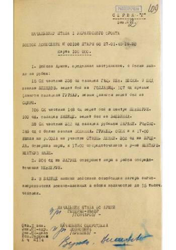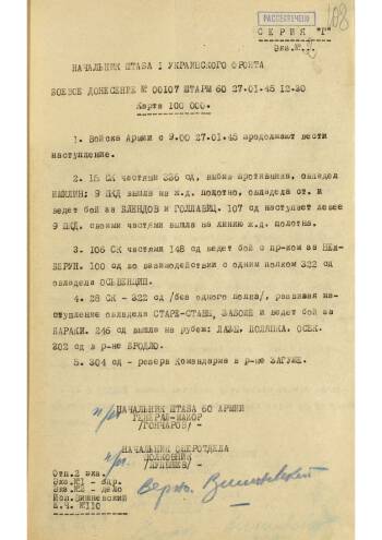Из журнала боевых донесений штаба 60-й армии 1-го Украинского фронта